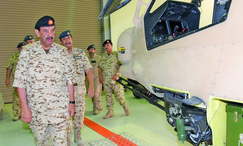 Manama : BDF Commander-in-Chief Field Marshal Shaikh Khalifa bin Ahmed Al Khalifa yesterday called on all its unit commanders to continue defending the nation and protecting its achievements by implementing development plans and training programmes. The aim, he said, is achieving sustainable development under the leadership of His Majesty King Hamad bin Isa Al Khalifa. The BDF commander said this while inspecting a number of BDF units where he was informed about their development and modernization plans.