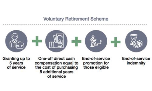 The scheme, however, excludes senior position and requires that the employee shall not return to civil service after retirement. Those fulfilling the said criteria will be granted up to 5 years of series plus a one-off direct cash compensation equal to the cost of purchasing five additional years of service. The selected employee will also be eligible for end of service promotion and end of service indemnity.