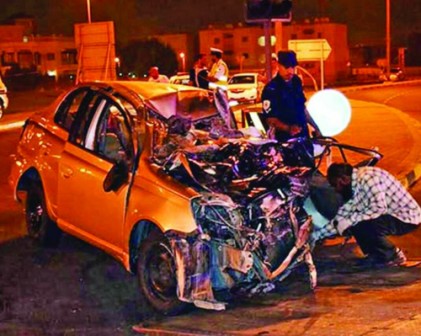 The accident, which claimed the lives of two Bahrainis at Arad on Sunday, has raised serious concerns about the reckless driving of motorists of neighbouring countries. The incident occurred when a Gulf national skipped a red light and collided with another car. A teenager and a six-year-old child were killed in the accident.