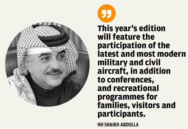 HM the King’s Personal Representative and Chairman of the Supreme Organising Committee of the Bahrain International Airshow (BIAS 2018), HH Shaikh Abdulla bin Hamad Al Khalifa, has extended thanks and appreciation to all parties that are exerting tremendous efforts ahead of the official opening of BIAS 2108, due to be held under the patronage of His Majesty King Hamad bin Isa Al Khalifa, on November 14-16, at the Al Sakhir Air Base.
