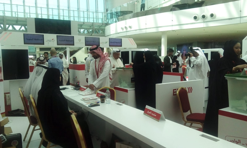 Voting here began at sharp 8.00 am after judge Jawaher Al Abdulrahman, Head of the Polling Centre, inspected the ballot boxes. Men, women, young, old and diff-abled flocked to the centre to exercise their democratic rights.