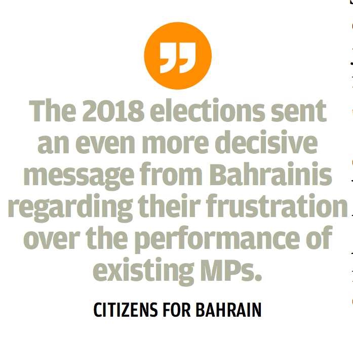 Political analysis group Citizens for Bahrain said in its commentary the Bahraini public was frustrated with the performance of the outgoing parliament members. “Nevertheless, the 2018 elections sent an even more decisive message from Bahrainis regarding their frustration over the performance of existing MPs. In the first round, Adel Al Asoomi and Isa Al Kooheji once again proved their local popularity by winning their seats outright.
