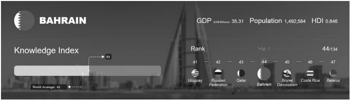 This year’s Global Knowledge Index (GKI) has placed Bahrain in the fourth spot in the Middle East region. Coming behind the UAE (19th), Israel (20th) and Qatar (43rd), Bahrain was placed 44th in the global report overall. The index comprises seven indicators: Pre-University Education, Technical Vocational Education and Training, Higher Education, Research, Development and Innovation, Information and Communications Technology, Economy and General Enabling Environment. The Global Knowledge Index serves as a roadmap for the sustainable development of societies.