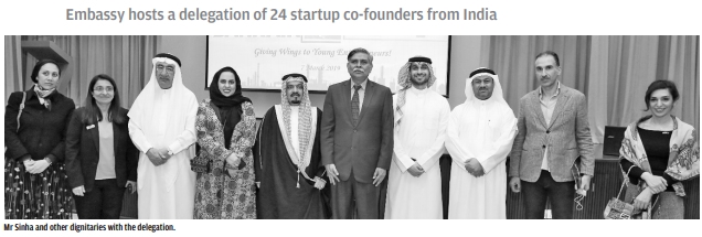 The Indian Embassy organised an event and an interaction session under the banner ‘Startup India and Bahrain’ at the Embassy Complex in Seef. The event was held to welcome an Indian delegation of 24 startup co-founders, who are on a visit to the Kingdom to attend the ‘Startup Bahrain Week’. ‘Startup Bahrain Week’, is being organised by the Economic Development Board (EDB), and it aims to bring together some of the brightest entrepreneurial minds. Speaking to Tribune, Indian Ambassador Alok Kumar Sinha, said, “India has actively pursued development of the start-up ecosystem in the country and now has the third largest start-up ecosystem in the world. Great strides have also been made by the Kingdom in recent years to develop the start-up ecosystem.