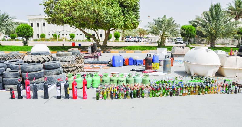 According to reports issued by the Public Prosecution, a total of 12 Molotov cocktails that are ready to be used, nine containers of petrol used in making Molotov cocktails and other explosives, fire tear gas bombs, three local-made grenades, iron rods, projectiles, and other materials were found in the abandoned building.