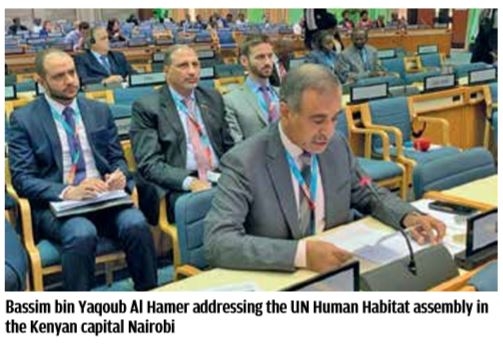 Bahrain attaches top priority to raising the living standards of people in the Kingdom as per the directives of His Majesty King Hamad bin Isa Al Khalifa, said Housing Minister, Bassim bin Yaqoub Al Hamer. Addressing the UN Human Habitat assembly in the Kenyan capital Nairobi, the Minister said the Kingdom is maintaining momentum of the SDGs’ achievement, particularly Goal 11 in making the cities and human settlements all-inclusive, safer, securer and capable of sustainable progress.