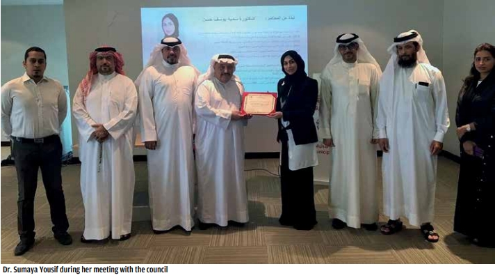 The discussions were based on Dr Yousif’s PhD dissertation on ‘Environmental engineering’ at York University,the UK,titled “DiscoveringTechnological Opportunities to Control Organic Household Waste in Muharraq Governorate”. She was invited by the Muharraq Governorate to hold a presentation. Chairman of the Council Ghazi Al Murbati, other members, several top officials and employees of the council and executive branch were present.