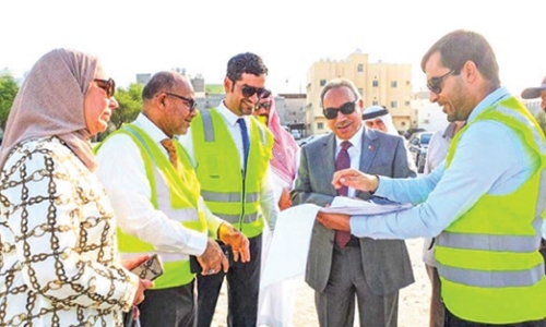 The Minister of Works, Municipalities Affairs and Urban Planning, Essam Khalaf paid an inspection visit to check the progress on Ma’ameer Waterfront Development Project yesterday. He was accompanied by Assistant Undersecretary of Joint Municipality Services, Wael Al Mubarak, General Director of Capital Municipality, Shawqiya Homaidan and Roads, Projects and Maintenance Director, Sayed Bader Alawi.