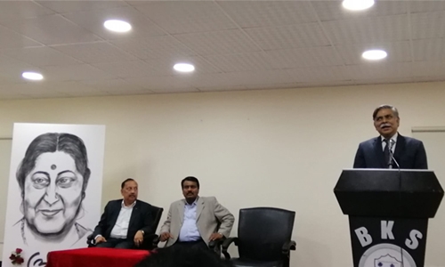 Three separate condolence meetings were held in the Kingdom yesterday to pay tribute to former external affairs minister of India, Sushma Swaraj, who passed away on Tuesday after suffering a cardiac arrest in New Delhi. Indian Ambassador Alok Kumar Sinha highlighted the contributions of Ms Swaraj towards strengthening the bilateral relations between India and the Kingdom at the condolence meeting held at the Indian Embassy Complex in Seef.