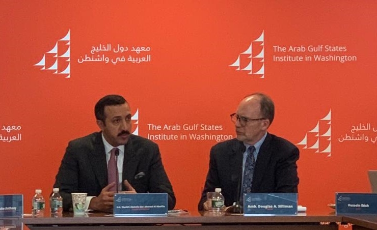 Board of Trustees Chairman of Bahrain Centre for Strategic, International and Energy Studies (DERASAT) Dr. Shaikh Abdullah bin Ahmed Al Khalifa participated in a panel discussion during a workshop on the future of the Gulf-US relations which was held at the Gulf Countries Centre, in Washington, in the presence of diplomats, academics, senior officials and researchers.