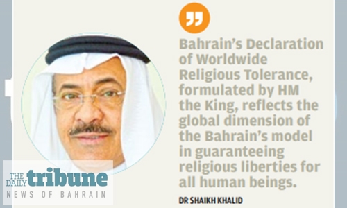 Dr Shaikh Khalid bin Khalifa Al Khalifa stressed the US stance, which praised the successful international round table on religious liberties in Mena region, which was hosted late last year in Manama by the King Hamad Global Centre for Peaceful Co-existence, in co-operation with the Religious Freedom and Business Foundation.