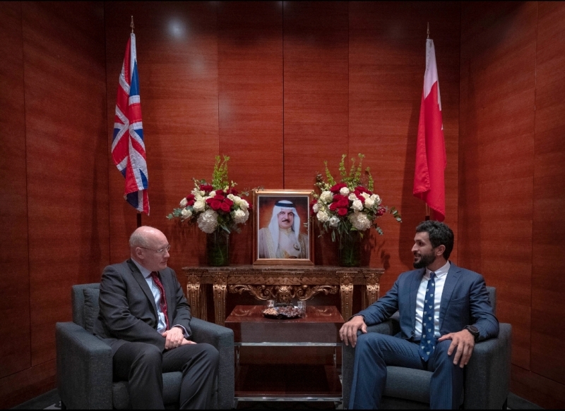 National Security Advisor, Royal Guard Commander Major-General His Highness Shaikh Nasser bin Hamad Al-Khalifa met UK Government Advisor for National Security Sir Mark Sedwill, who welcomed his visit to the United Kingdom.