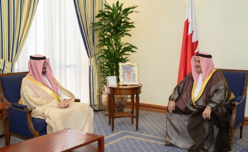 His Majesty the King’s Diplomatic Affairs advisor Shaikh Khalid bin Ahmed Al Khalifa received Bahraini Ambassador to Saudi Arabia Shaikh Hmood bin Abdulla Al Khalifa. The advisor expressed appreciation for the ambassador’s great efforts in implementing the visions of His Majesty King Hamad bin Isa Al Khalifa, and his prominent role in strengthening the deep-rooted historical relations between the two countries at all levels, wishing him further success. Shaikh Hmood stressed his keenness to maintain constant communication and cooperation in support to the two countries’ achievements and future goals.