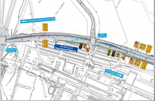 The left lane on King Hamad Street was closed from today until dawn on Sunday