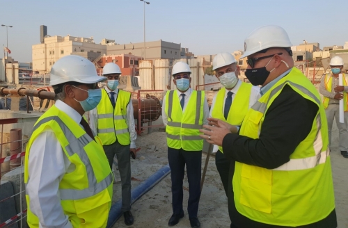 The Ministry has also constructed a sewage line from Ramli housing project to the existing sewage network in Salmabad, temporarily until the current project reaches completion. The minister said this as he visited the project site accompanied by Assistant Undersecretary for Sanitation, Ibrahim Hassan Al-Hawaj, and the Director of the Sanitation Planning and Projects Department, Fathi Abdullah Al-Farea, several engineers, and the project contractors.