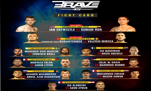 BRAVE CF 45 will take place behind closed doors in the National Stadium, Bahrain, and starts at 6PM (GMT+3), this Thursday. The show will be available on bravecftv.com and locally through their partners.