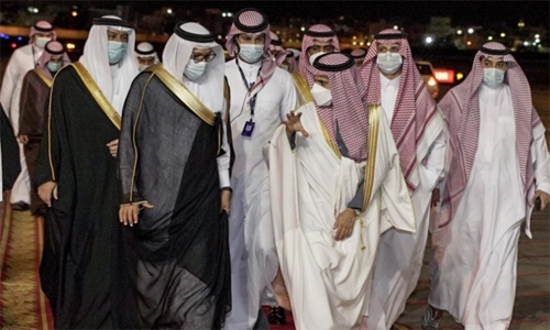 He was received upon arrival, alongside his accompanying delegation, by Minister of Foreign Affairs Dr. Abdullatif bin Rashid Al Zayani, Assistant Foreign Minister Abdullah bin Faisal bin Jaber Al Dosari, Saudi Ambassador to Bahrain HRH Prince Sultan bin Ahmed bin Abdulaziz Al Saud, and senior official from the Foreign Ministry.