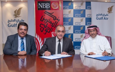 rnNBB and Gulf Air signed a major joint promotion deal aimed at providing great value to NBB customers at a ceremony held at Gulf Air Head Office in Muharraq. Through this unique partnership, customers who buy Gulf Air tickets online, using their NBB debit cards or credit cards will get a 10 per cent discount on the ticket price. The offer is applicable on both the airline’s falcon gold class (premium) and economy class and is valid for tickets purchased from the official Gulf Air website gulfair.com from now until March 31, 2016. Speaking at the signing ceremony, Abdul Aziz Al Ahmed, General Manager, Domestic Banking Group of NBB said, “This special promotion with Gulf Air is one of the many initiatives we have undertaken to ensure that our customers are constantly reminded of our superior service.”Ahmed Janahi, Gulf Air Acting Chief Commercial Officer said, “We are pleased to partner with NBB to renew this joint promotion with them. Together we are facilitating travel with Gulf Air and across our network at more attractive and competitive fares - appealing to our passengers and reinforcing our commitment to make Gulf Air the carrier of choice. I hope all NBB customers enjoy the benefits this joint promotion avails.”