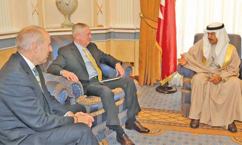 Prime Minister His Royal Highness Prince Khalifa bin Salman Al Khalifa received former Commander of the U.S. Central Command Gen. James Mattis, former Director of British Special Forces Gen. Sir Graeme Lamb, and Advisor to Duke of Westminster Andre Pienaar at the Gudaibiya Palace yesterday.