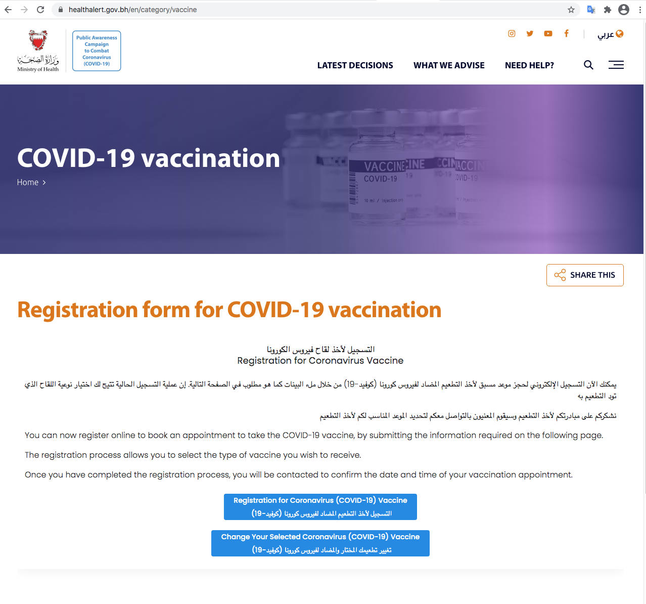 Bahrain calls on citizens and residents to get protected against COVID-19