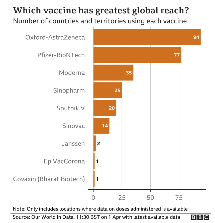 The US and China have administered the highest number of doses, 150 million and 120 million, respectively.