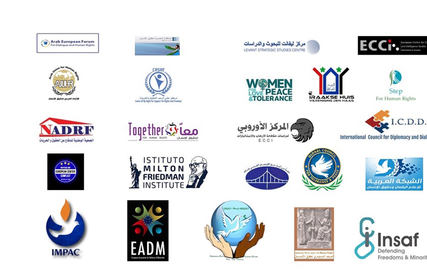 The Egyptian Organization for Human Rights (Arab Republic of Egypt), Levant Strategic Studies Center (UK), The Arab Bridge for Human Rights (Jordan), European Center for counterterrorism and Intelligence studies (Germany), Solidarisons Nous Pour Paix Tolerance Cohesion Sociale (France), “Together” Human Rights Association (Bahrain), European Center for Peace and Conflict resolution (France), Sumerian Observatory for Human Rights (The Netherlands).