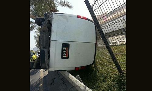 The driver of the van, which belonged to a security company, and two fellow passengers suffered multiple injuries, while the other driver, who was apparently a Gulf national, sustained minor injuries. They were all taken to the hospital by ambulance for treatment.