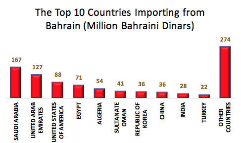 Saudi Arabia topped the buyers’ list of made-in-Bahrain products with BD167 million. Closely following was the United Arab Emirates with BD127m and the United States of America with BD88 million.