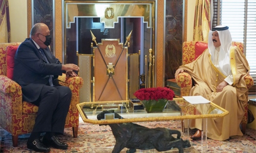 His Majesty expressed pride in the deep-rooted fraternal relations between the two countries as he welcomed Egypt’s Foreign Affairs Minister Sameh Shoukry at Al Safriya Palace yesterday.