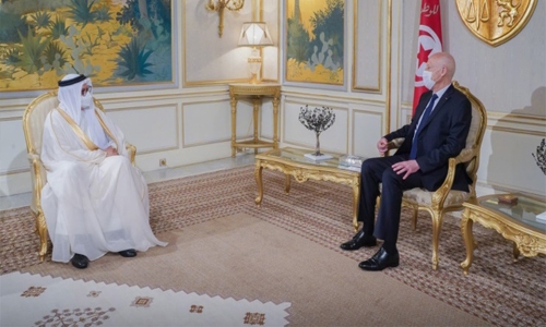 This came as President Saied received at the Presidential Palace yesterday Foreign Affairs Minister Dr Abdullatif bin Rashid Al Zayani. The Minister conveyed to the Tunisian leader greetings and good wishes from HM the King and HRH the Crown Prince and Prime Minister, as well as their wishes of security, stability, and prosperity to the Tunisian people.