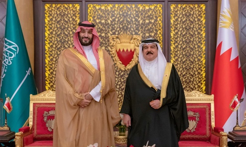 During talks, the Saudi Crown Prince conveyed to HM the King greetings from Custodian of the Two Holy Mosques King Salman bin Abdulaziz Al Saud, wishing Bahrain and people further progress and prosperity.