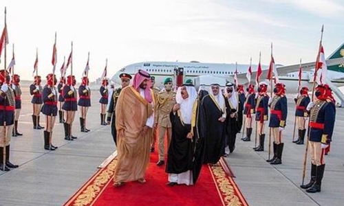After a short pause at the Grand Protocols Lounge at the Sakhir Air Base, a convoy carrying their highnesses went to the Al-Sakhir Palace for official reception and talks.