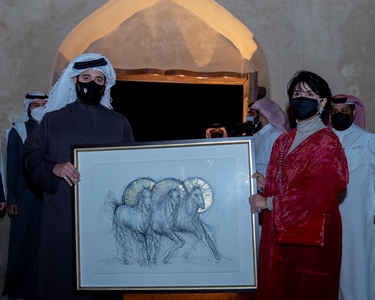 HH Shaikh Khalid expressed his pride in the creative artwork by Shaikha Hala that highlights the Kingdom’s falconry heritage.