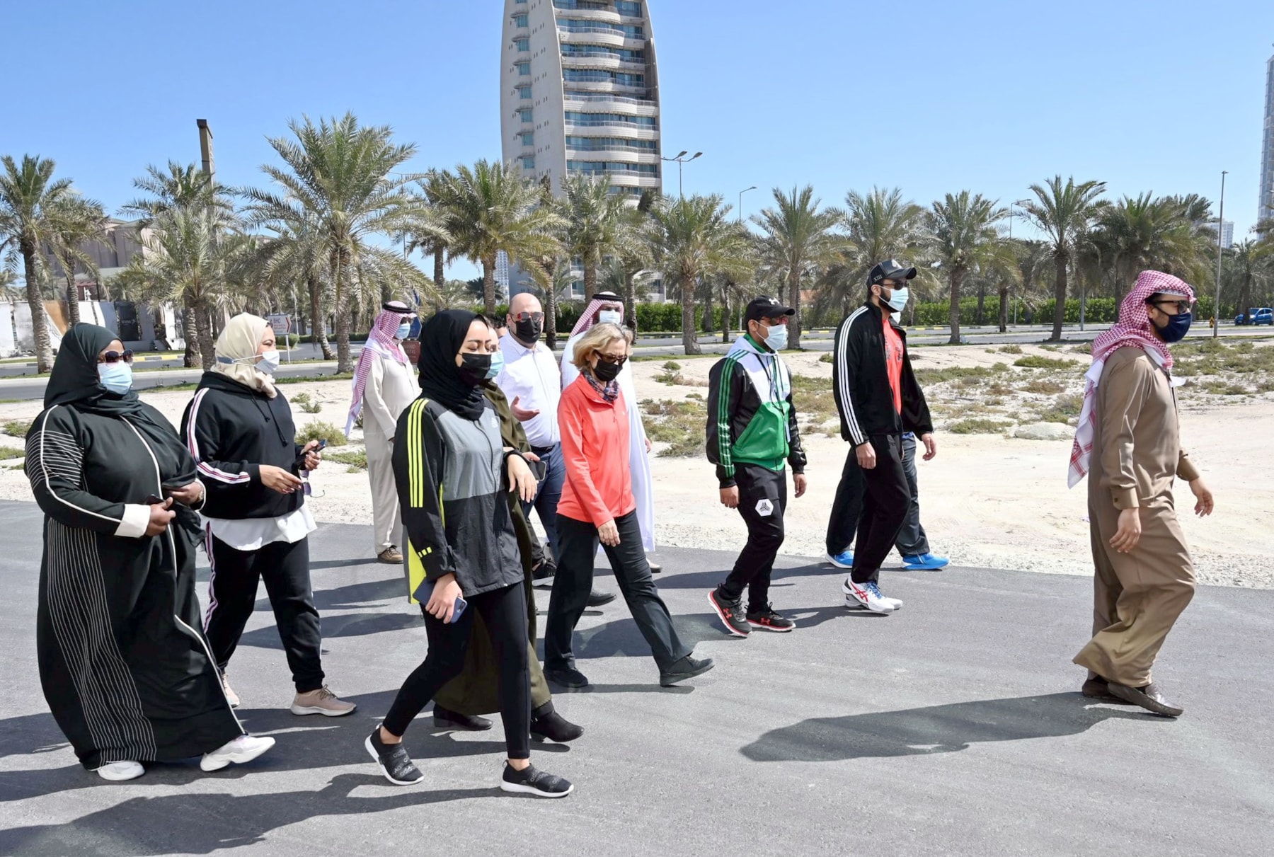 Led by the minister, Esam bin Abdullah Khalaf, personnel from the ministry took a walk on the new Al Fateh Walkway used by an increasingly high number of people. “The ministry is implementing several service projects for encouraging sports and creating a social and recreational outlet to achieve sustainable development,” Khalaf said.