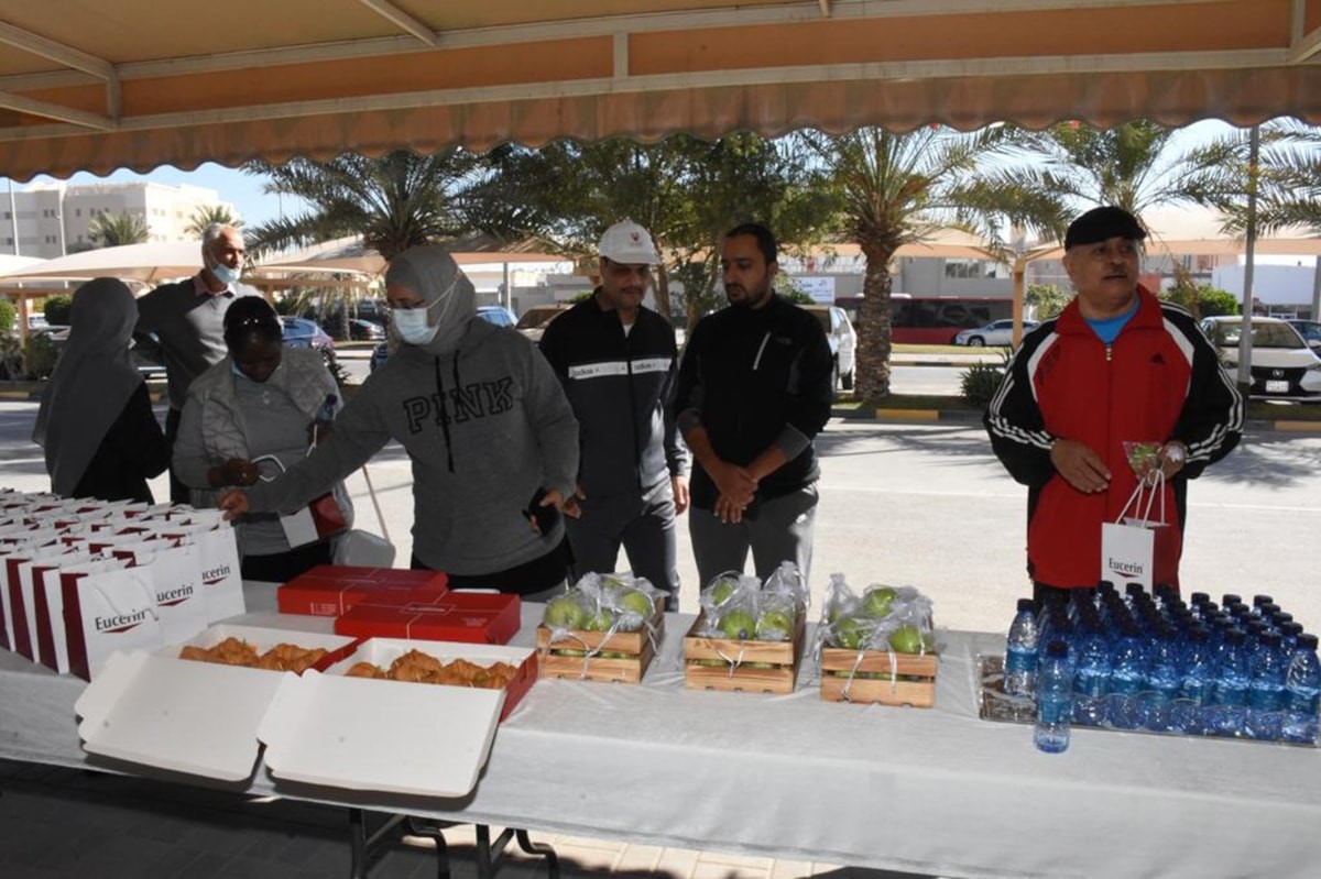 Executive Director Dr. Hamad Al-Abdulla, management members and staff took part in a walkathon, bicycle rides, stationary e-bike machines, and a football match. Healthy snacks and drinks were distributed.