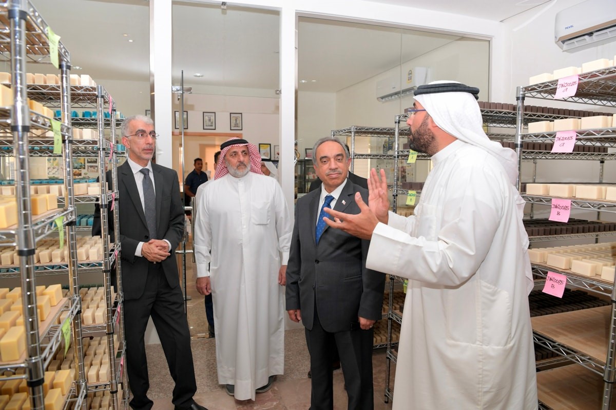 The minister and the accompanying delegation listened to an explanation of the progress of the production process in the farm and the development plans implemented by the company to enhance its contribution to supplying the market with local products of vegetables and milk derivatives. Minister Khalaf praised the project, which supports the official efforts to achieve self-sufficiency in vegetables and milk products. He also praised the efforts of those in charge of this distinguished Bahraini venture by introducing solar energy into the project.