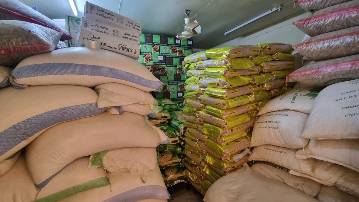 The raid was in the presence of specialists from the Northern Governorate Police Directorate. Officers said they found food materials in large quantities in all rooms on the ground floor. Products seized include spices, nuts, lentils, coconut, dried figs, imported rice and others.
