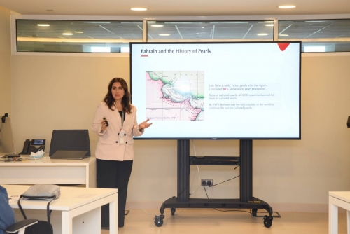 Ms Amal Al Kooheji, Member of the Board of Directors of DANAT and President of the Adliya Rotary Club, said that hosting these visits comes within the framework of the institute’s keenness to enhance the knowledge of Bahraini youth in the history of Bahraini pearls, their locations, methods of extraction, examination and documentation mechanisms, in line with DANAT role in implementing the National Plan to Revitalize the Pearl Sector.