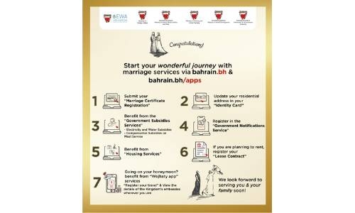 The eServices, In line with its efforts to promote digital culture among families in Bahrain, help streamline marriage information and procedures, eliminating the need to visit government service centers in-person.