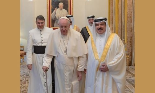 Pope also lauded the vital role of Bahrain in consolidating the culture of dialogue, tolerance and peaceful coexistence, wishing Bahrain further growth and prosperity.