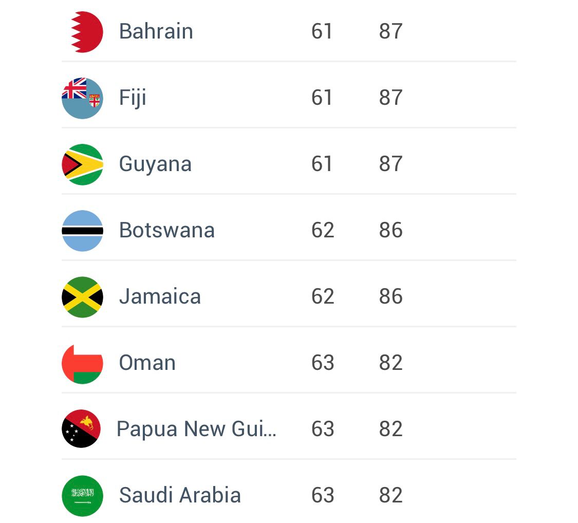 The index consists of 199 different passports, as well as 227 different travel destinations. Saudi Arabia shares the 63rd rank on the index with Oman and Papua New Guinea.