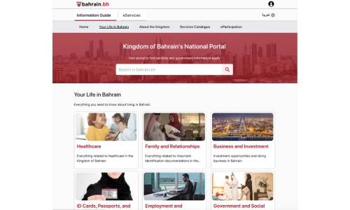You can benefit from our eServices via bahrain.bh/app or bahrain.bh.” bahrain.bh is aligned with Bahrain Strategic Vision 2030 and maintained by the Information and eGovernment Authority. The website provides informational, interactive, and transactional services and facilitates communication with government entities.