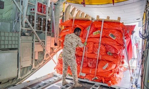 The relief aid, flown by Bahraini Royal Air Force aircraft, is in implementation of the directives of His Majesty King Hamad bin Isa Al Khalifa, the Supreme Commander of the Armed Forces, to provide the necessary support to the affected victims in Syria and Türkiye after the devastating earthquake.