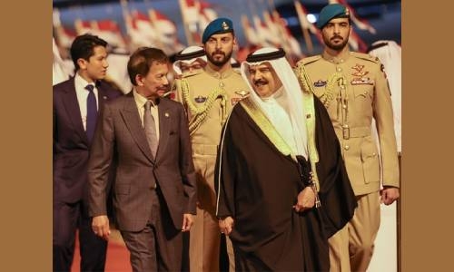 His Majesty King Hamad bin Isa Al Khalifa welcomed last night Sultan Hassanal Bolkiah of Brunei, who was accompanied by His Royal Highness Prince Abdul Mateen, and the accompanying delegation on arrival in the Kingdom of Bahrain on an official visit.