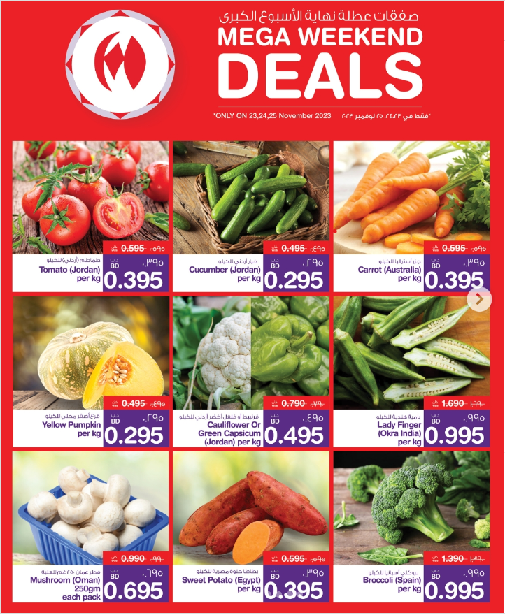 Megamart Bahrain is holding a sale named Mega Weekend Deals from November 23rd to 25th and is offering incredible discounts on all of the favourite products.