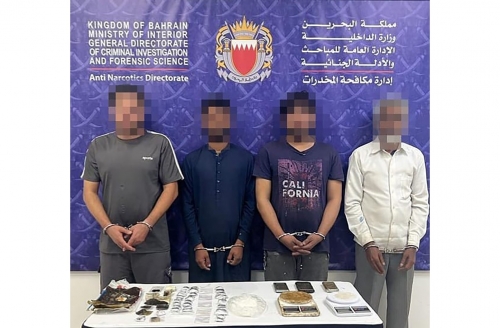 The Anti-Narcotics Department of the General Department of Investigation and Criminal Evidence arrested several individuals in possession of over five kilograms of narcotics and psychotropic substances valued at approximately BD83,000.