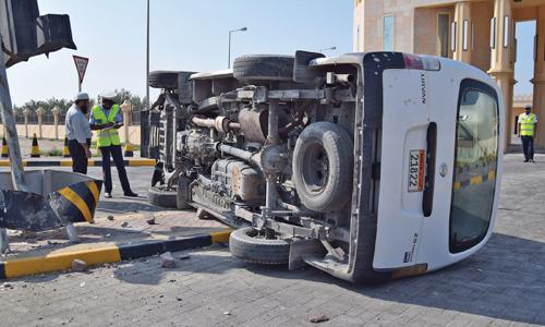 An Asian man escaped unhurt after his vehicle rammed into a traffic light post in Janabiya. The bus was left with severe damage in the accident. The accident caused heavy conges- tion until traffic police arrived at the scene and controlled the traffic