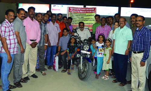 Narayana will cover 25 countries on his modified bike within a time frame of six months. B.V Narayana visited Bahrain Keraleeya Samajam(BKS) yesterday and interacted with the members.