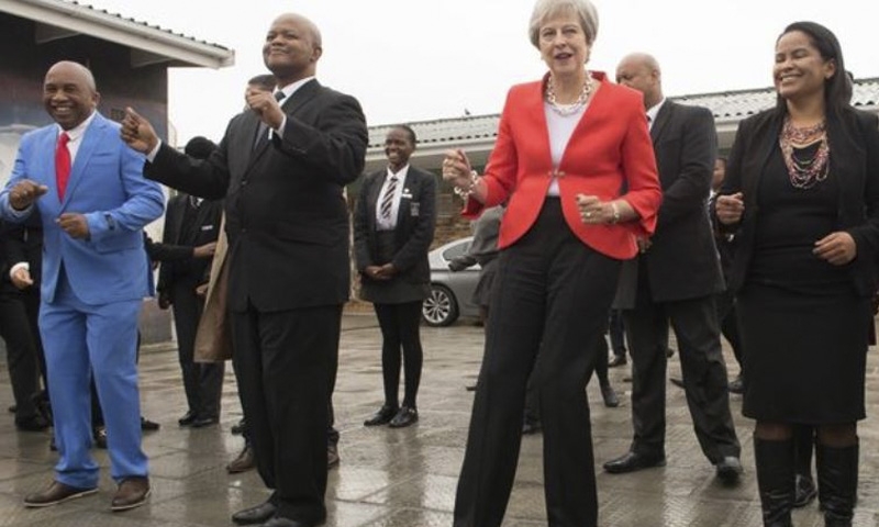Britain’s May dances with children in South Africa