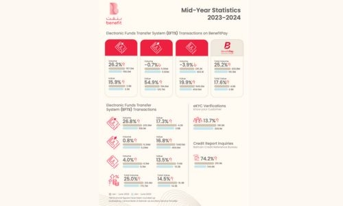 Moreover, Fawri experienced a value increase of 19.9% through the BenefitPay application, increasing from BHD 454.6 M during the first half of 2023, to BHD 545.0 M in the first half of 2024.